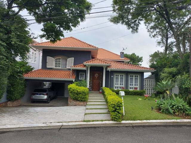 Ampla sala de visitas com 2 ambientes, 3 dormitórios e 3 suítes com sacadas e linda vista panorâmica, amplo escritório, sala de almoço e sala de jantar contendo outra sala menor para adega, sala de TV com lareira, ampla cozinha com armários e depósito, 2 áreas de serviço, suíte master com closet e banheira com acabamento em mármore, quarto de empregada com banheiro, edícula, garagem para 4 carros com depósito, perto da portaria, mas distante dos muros do condomínio trazendo mais silêncio, piscina, churrasqueira e forno de pizza.