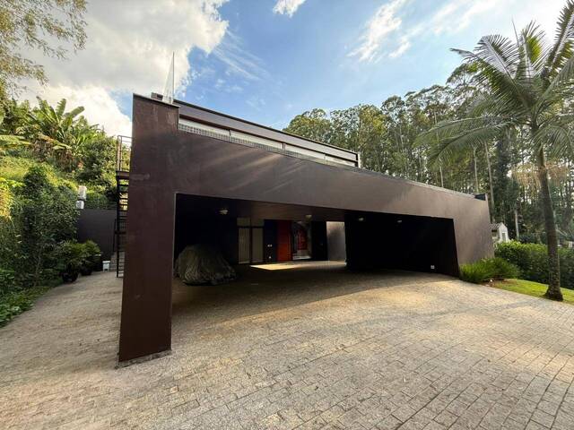 A casa tem total privacidade, fica bem alto, são 3 suítes mais um ambiente multi-uso, cozinha principal completa de eletrodomésticos, uma segunda cozinha reservada, despensa, suíte de funcionários, sala toda em vidro, ambientes com ar condicionado, piscina e spa aquecidos indicidualmente, com vista privativa para a mata.